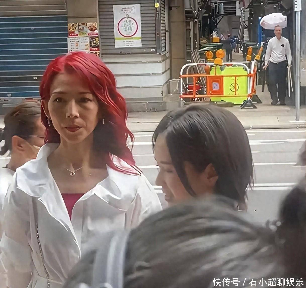 样貌大变样前不久,有网友在香港中环街道,意外遇见了蔡少芬。当天她身着黑色露肩衬衫,旁边还停着一辆红色法拉利。酒红色的头发在雨中泛着光泽,直到路人举着相机喊了句“芬姐”。